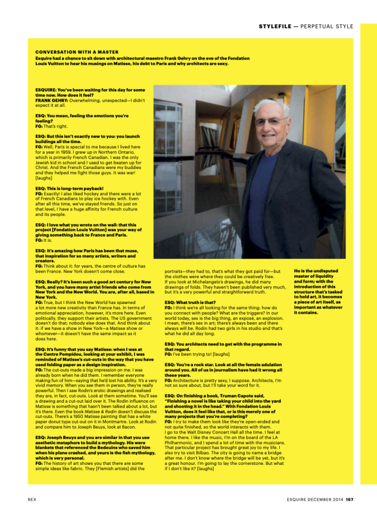 The loss of Frank Gehry—one of the world’s greatest architects—will be felt across the design world and culture for years to come. I had the great honour to interview Mr Gehry as he opened his Magnus Opus project, the incredible Fondation Louis Vuitton, now celebrating more than a decade as an icon of global art and culture.